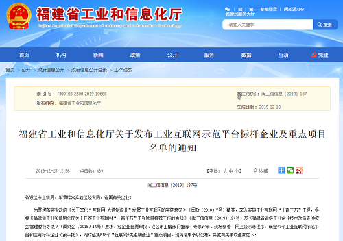 福日電子入選福建省第一批工業互聯網應用標桿企業名單