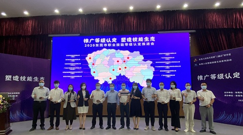 推進會現場,東莞市人社部門圍繞國家職業資格證書制度歷史、職業技能等級認定制度建立等四方面內容,為與會企業代表作專題授課,并就東莞職業技能培訓標準開發與認證政策進行詳細解讀,為企業選人用人以及勞動者求職就業和成長成才提供理論依據和支撐。
