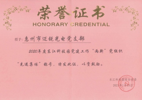 近日,東江科技園綜合黨委召開2020年度工作總結暨支部書記述職會議,總結回顧2020年園區“兩新”組織黨建工作,謀劃部署2021年工作。園區“兩新”組織黨組織書記、黨務工作者、黨員代表、職工代表等40多人參加會議。會議聽取了各黨支部書記的述職匯報,并表彰了2020年度先進集體、先進黨務工作者。惠州市邁銳黨支部榮獲“2020年度東江科技園黨建工作‘兩新’黨組織先進集體”稱號。