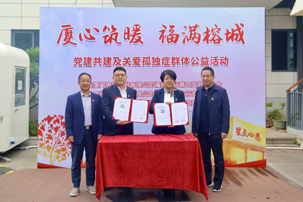 為深化銀企合作,11月11日下午,在福日電子黨委書記、董事長(zhǎng)楊韜,黨委副書記、紀(jì)委書記陳富貴以及廈門銀行福州分行副行長(zhǎng)鄭成輝的見(jiàn)證下,福日電子本部黨支部分別與廈門銀行第四黨支部、倉(cāng)山分行黨支部簽訂《黨建共建協(xié)議書》,加強(qiáng)思想共建、促進(jìn)資源共享、實(shí)現(xiàn)優(yōu)勢(shì)互補(bǔ)。簽約儀式后,雙方黨員代表共同走進(jìn)“星點(diǎn)心愿”支持孤獨(dú)癥青年工作公益店,攜手開(kāi)展“廈心筑暖·福滿榕城——黨建共建暨關(guān)愛(ài)孤獨(dú)癥群體公益活動(dòng)”。
